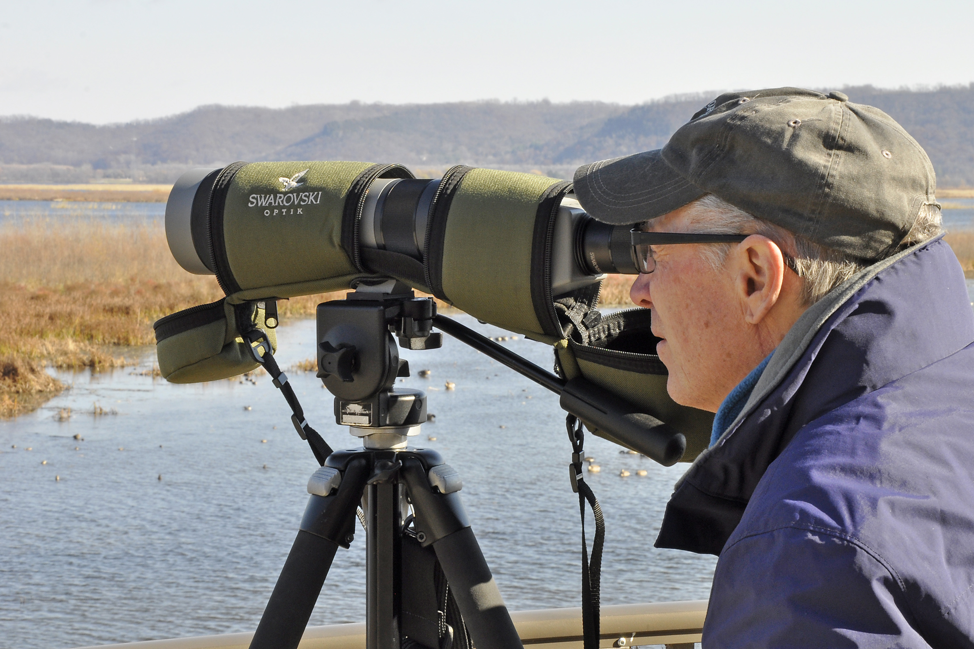 Thousands of water birds stop to rest and feed on the river in the fall migration. Refuge naturalists offer an opportunity for visitors to see them up close and ask questions about the migration.