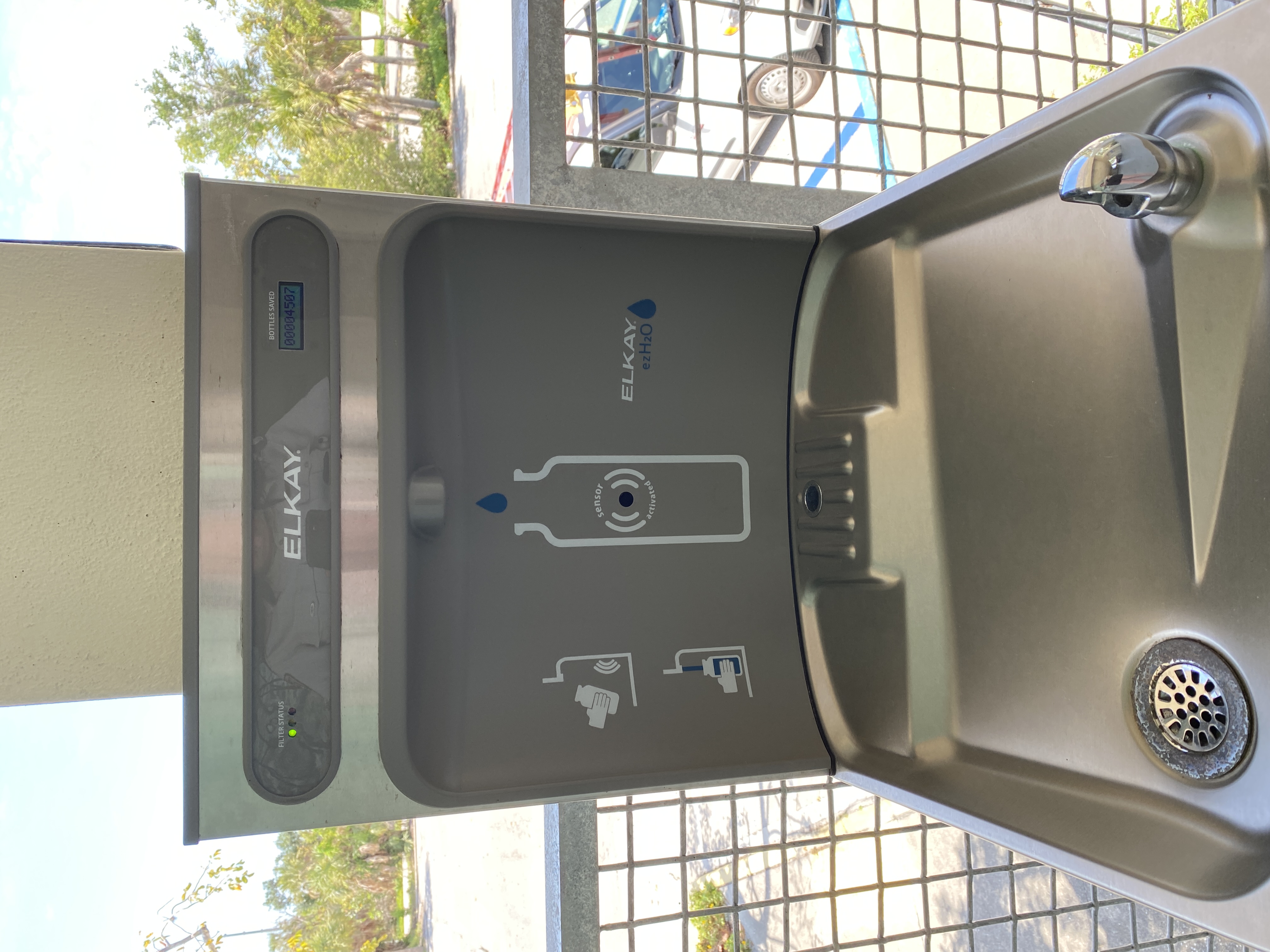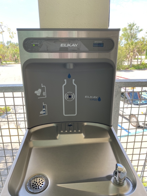 A water bottle refilling station at J.N. "Ding" Darling National Wildlife Refuge in Florida. The refuge hasn’t sold a single-use plastic water bottle since 2011. By April 2024, the U.S. Fish and Wildlife Service had stopped the sale of single-use plastic bottles at 25% of its visitor centers, to reduce plastic waste and pollution.