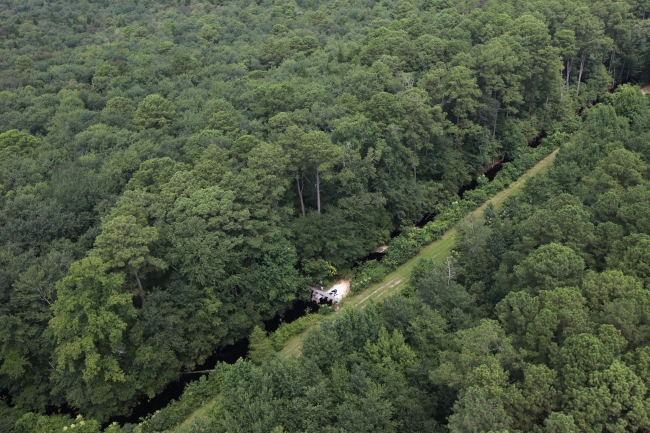 Water control structures in Great Dismal Swamp National Wildlife Refuge dam hundreds of miles of man-made ditches to prevent the swamp from draining.