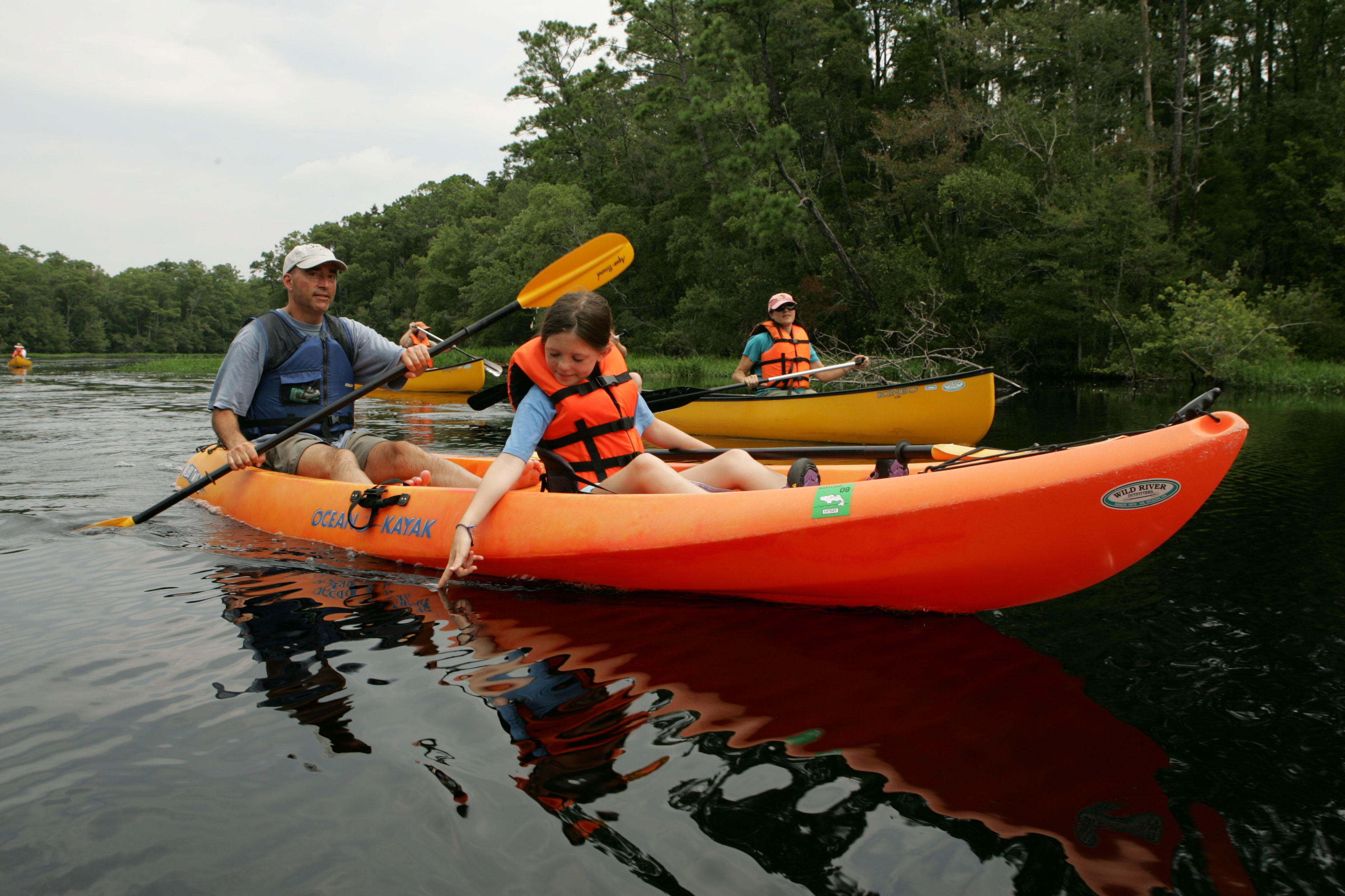 Young child enjoys the water during a kayak trip.