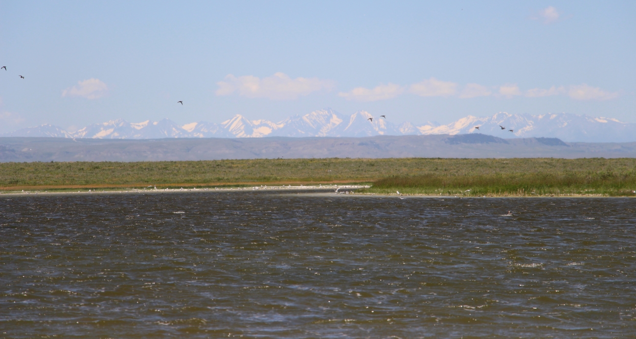 Distant mountain views over water at Grass Lake National Wildlife Refuge present good photo opportunities, particularly when a few ducks fly within frame. Photo by Cortez Rohr/USFWS.