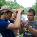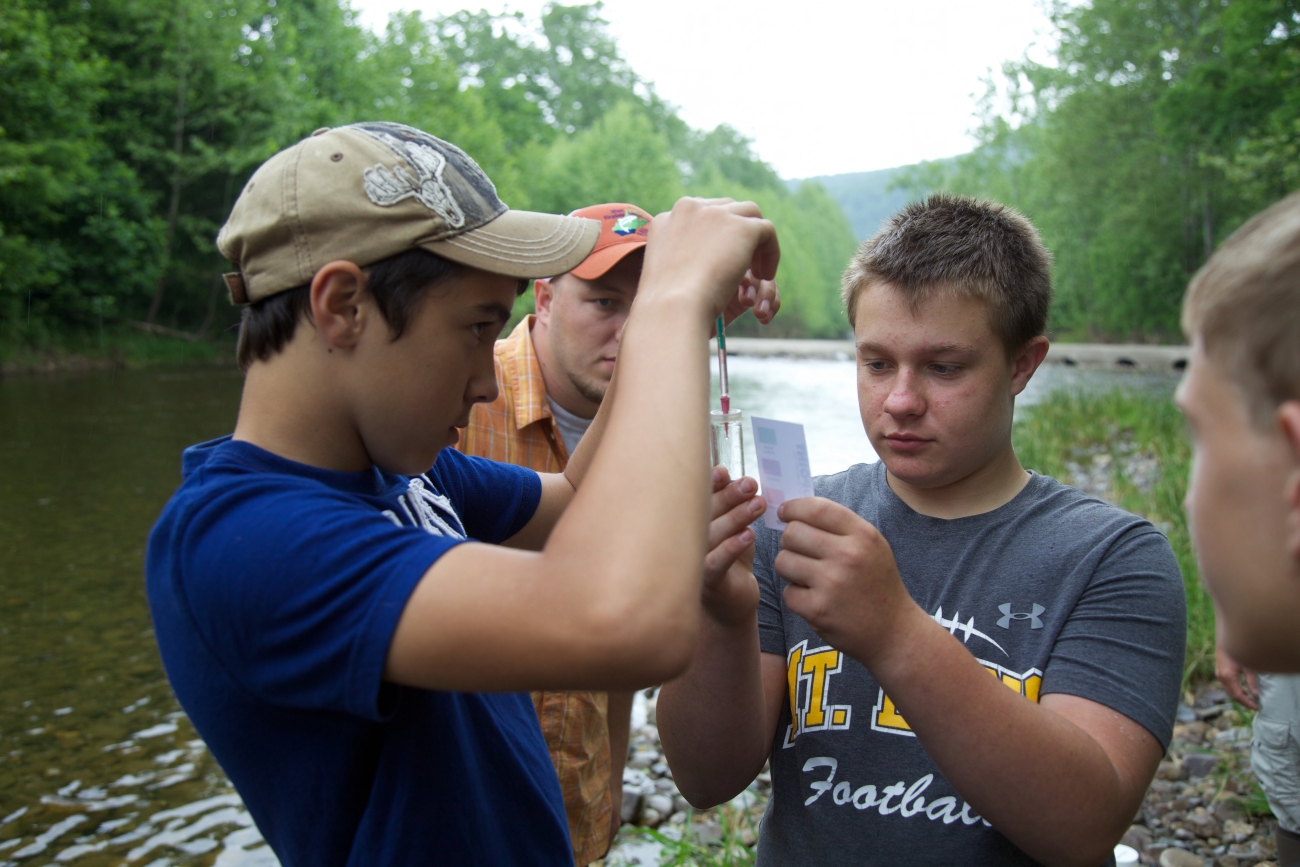 School children test water quality chemistry/survey macroinvertebrates at Seneca Rocks, WV.