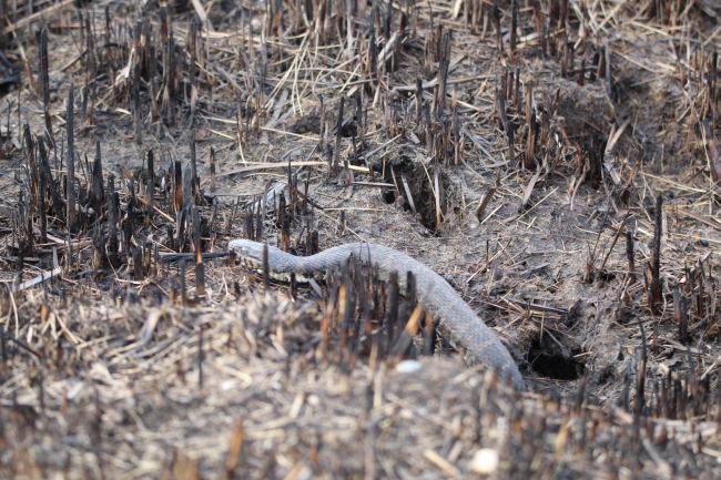 Water snake slithering through the grass at Blackwater National Wildlife Refuge
