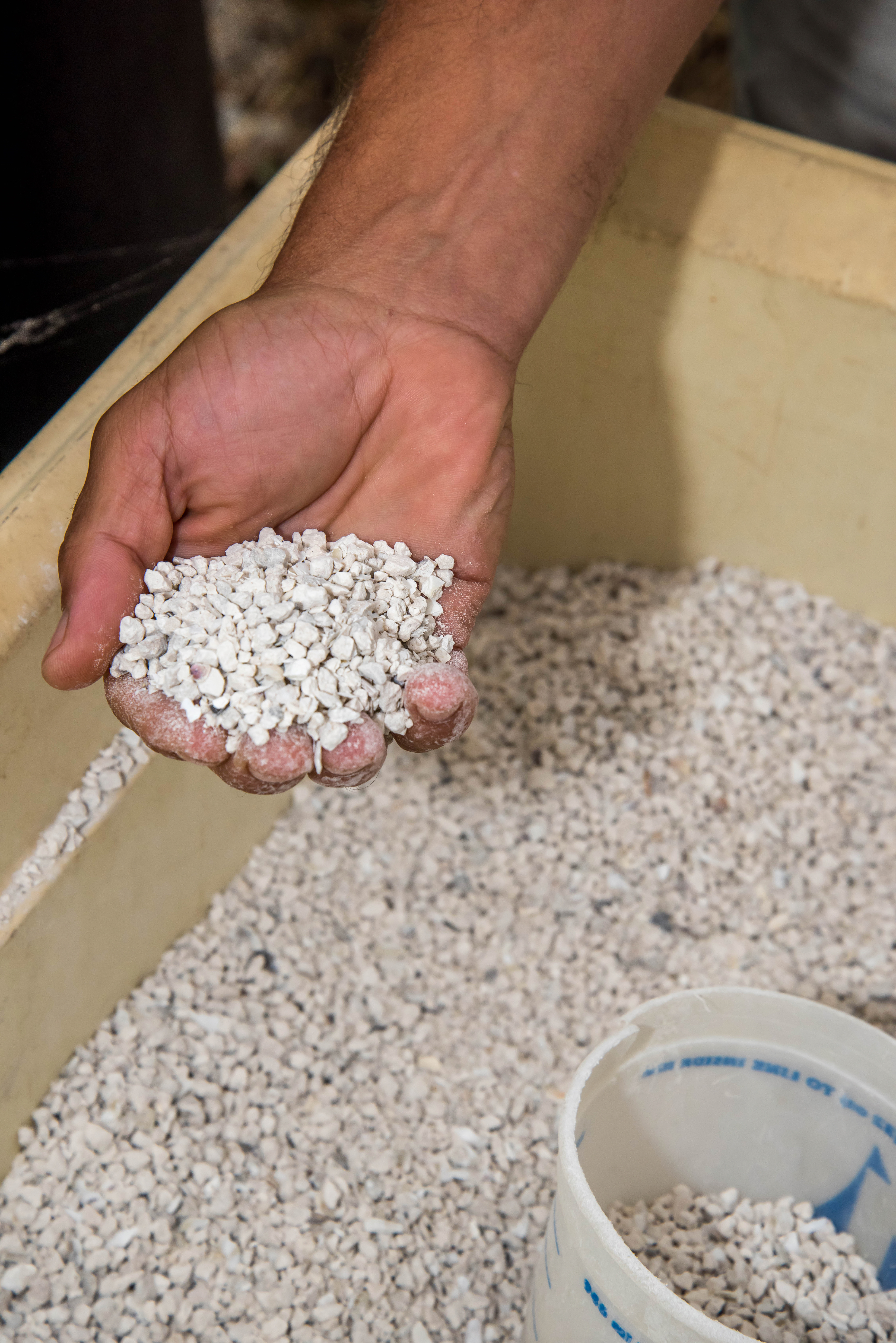 Mussel propagation equipment - water treatment system, oyster shell.