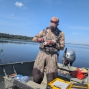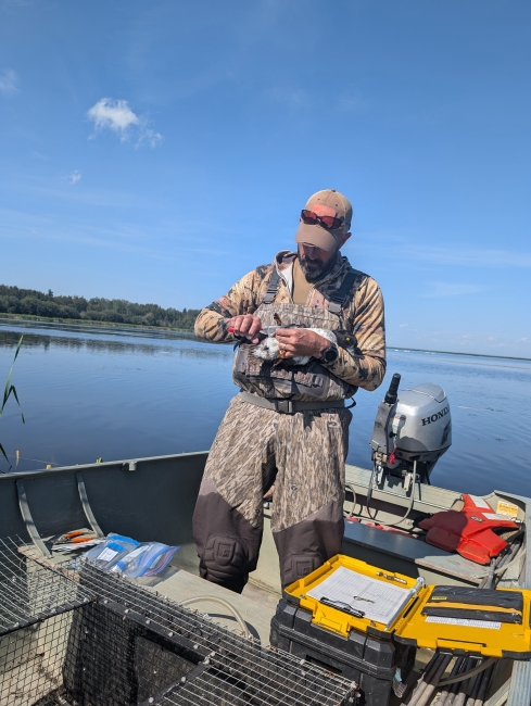 2024 Lake Utikuma Waterfowl Banding Crew lead Chris Cain banding his first ever Barrow’s goldeneye, a very exciting day!