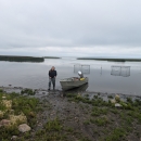 Adriana Levia, part of the 2024 Lake Utikuma waterfowl banding crew, parks the boat in front of the swim-in traps and heads into shore to begin banding.
