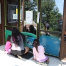 Students installing a mural on the doors of the Waubay NWR visitors center.