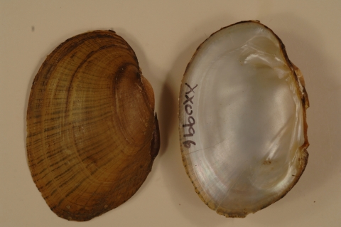 NCTC Freshwater Mussels Teaching Collection: Order: Unionoida Family: Unionidae Genus (ITIS): Lampsilis Species: fasciola Williams et al.: Use to be: Location Name: Location State: XX