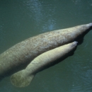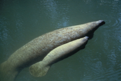 Manatee cow and calf swimming side-by-side in Crystal River. For more information about manatees visit http://www.fws.gov/northflorida/manatee/manatees.htm.