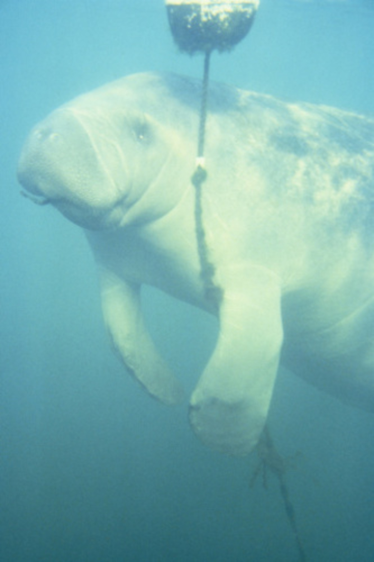 Manatee playing with a crab trap line in Crystal River National Wildlife Refuge. Trap lines pose a common danger of entrapment for manatee. For more information about manatees visit http://www.fws.gov/northflorida/Manatee/manatees.htm