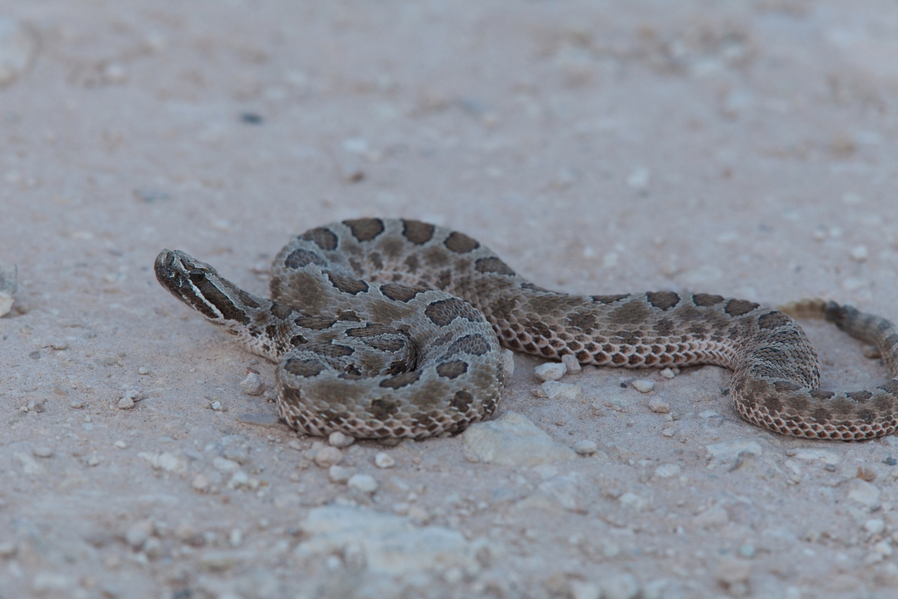 A coiled Western Massasauga Rattlesnakes (Sistrurus catenatus tergeminus).