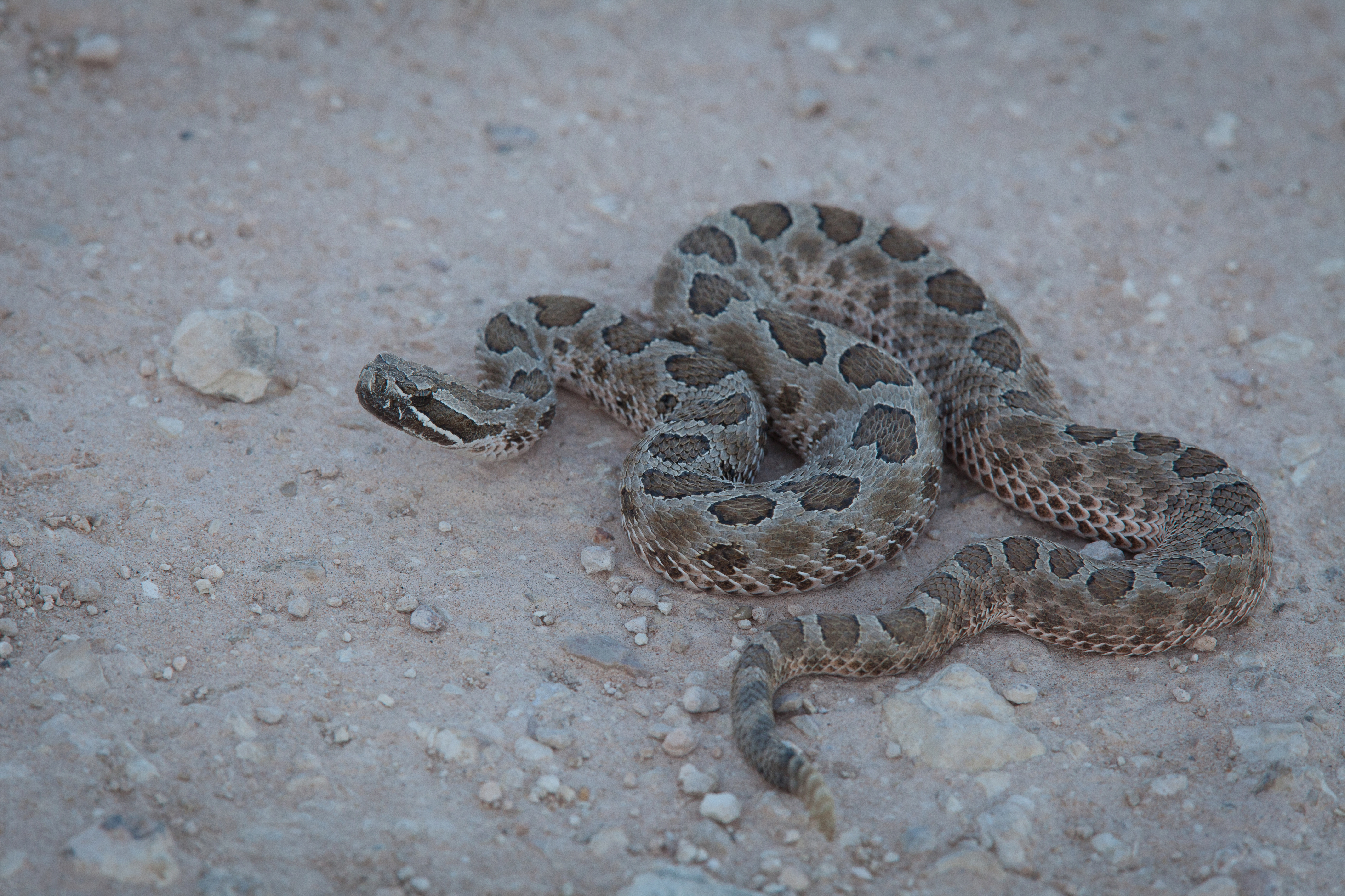 A coiled Western Massasauga Rattlesnakes (Sistrurus catenatus tergeminus).