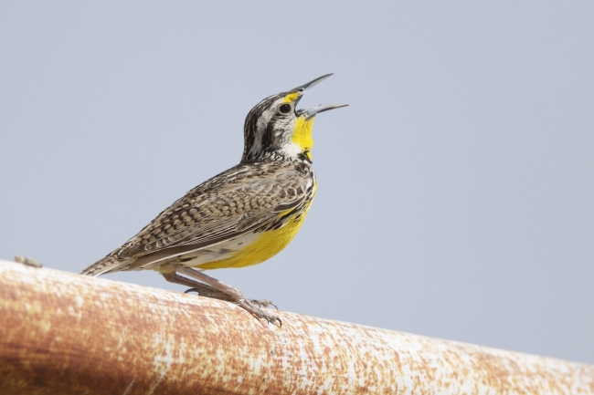 Western Meadowlark sings while perched on a pole. 2017 Valle de Oro NWR Photo Contest entry