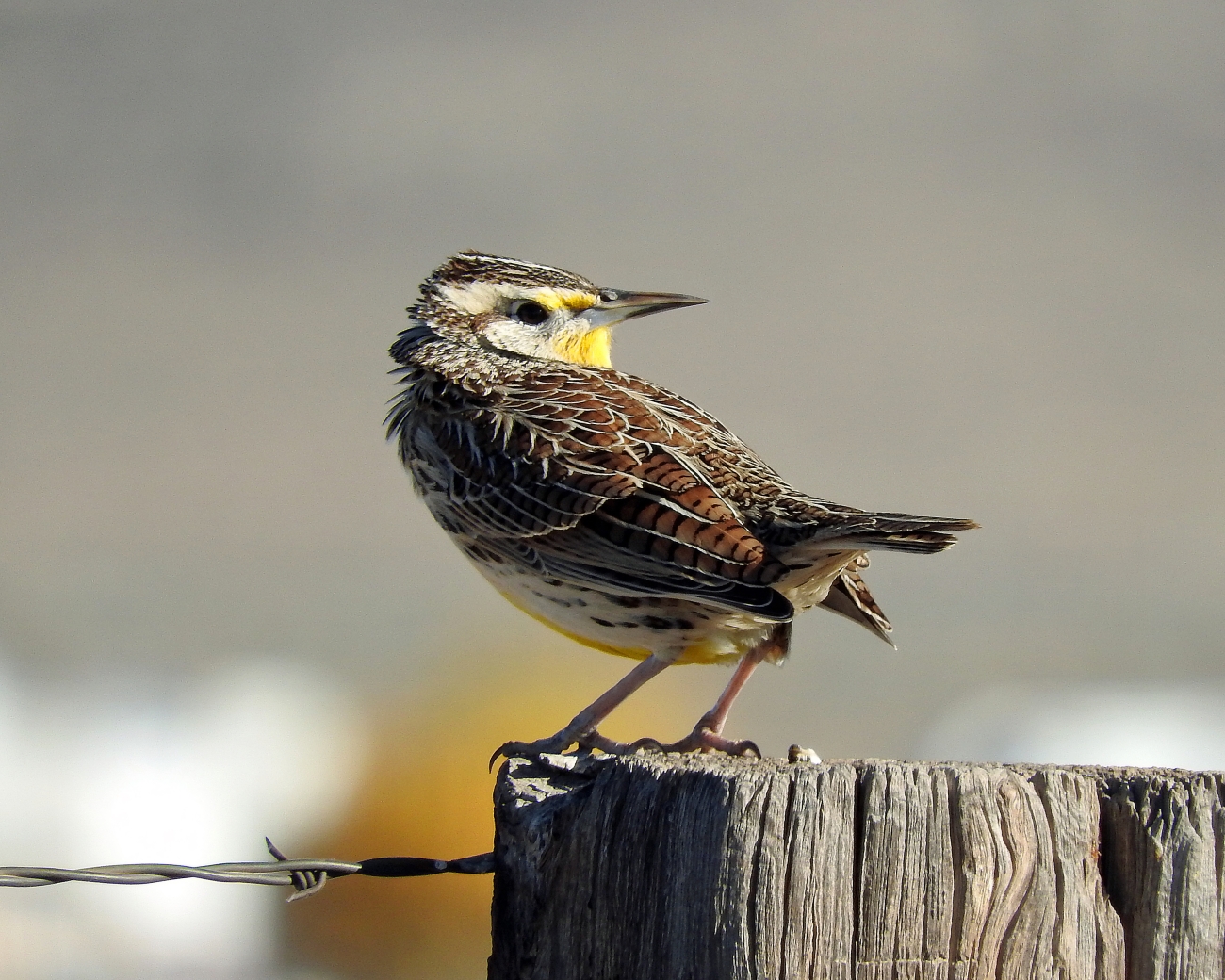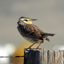Western Meadowlark sits on a fence post with head turned to the side. Meadowlark, 2017 Valle de Oro NWR Photo Contest entry