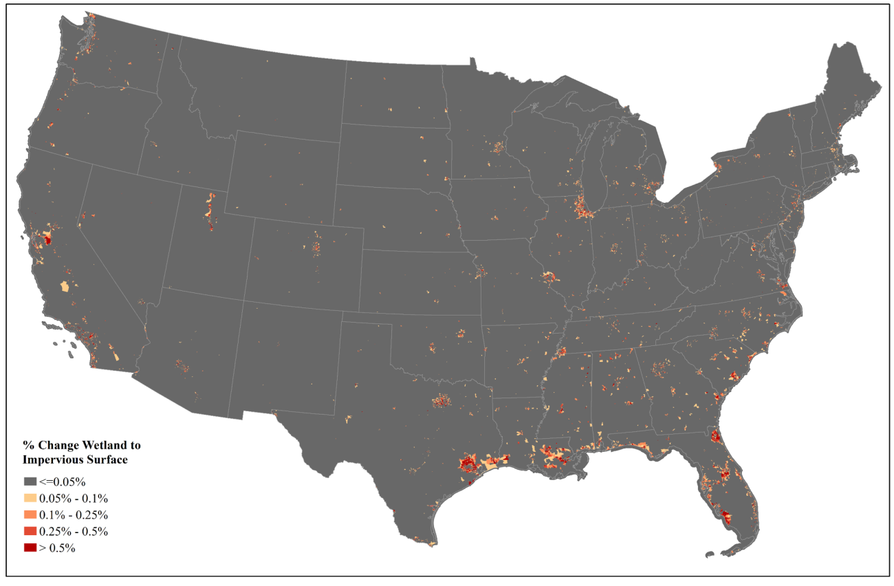 Wetland to Impervious Surface Difference Product at the Census Tract Scale.