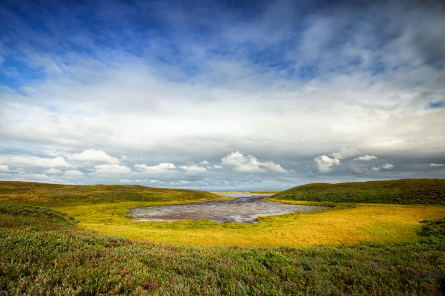 Wetlands dot the tundra landscape at Izembek National Wildlife Refuge in Alaska.