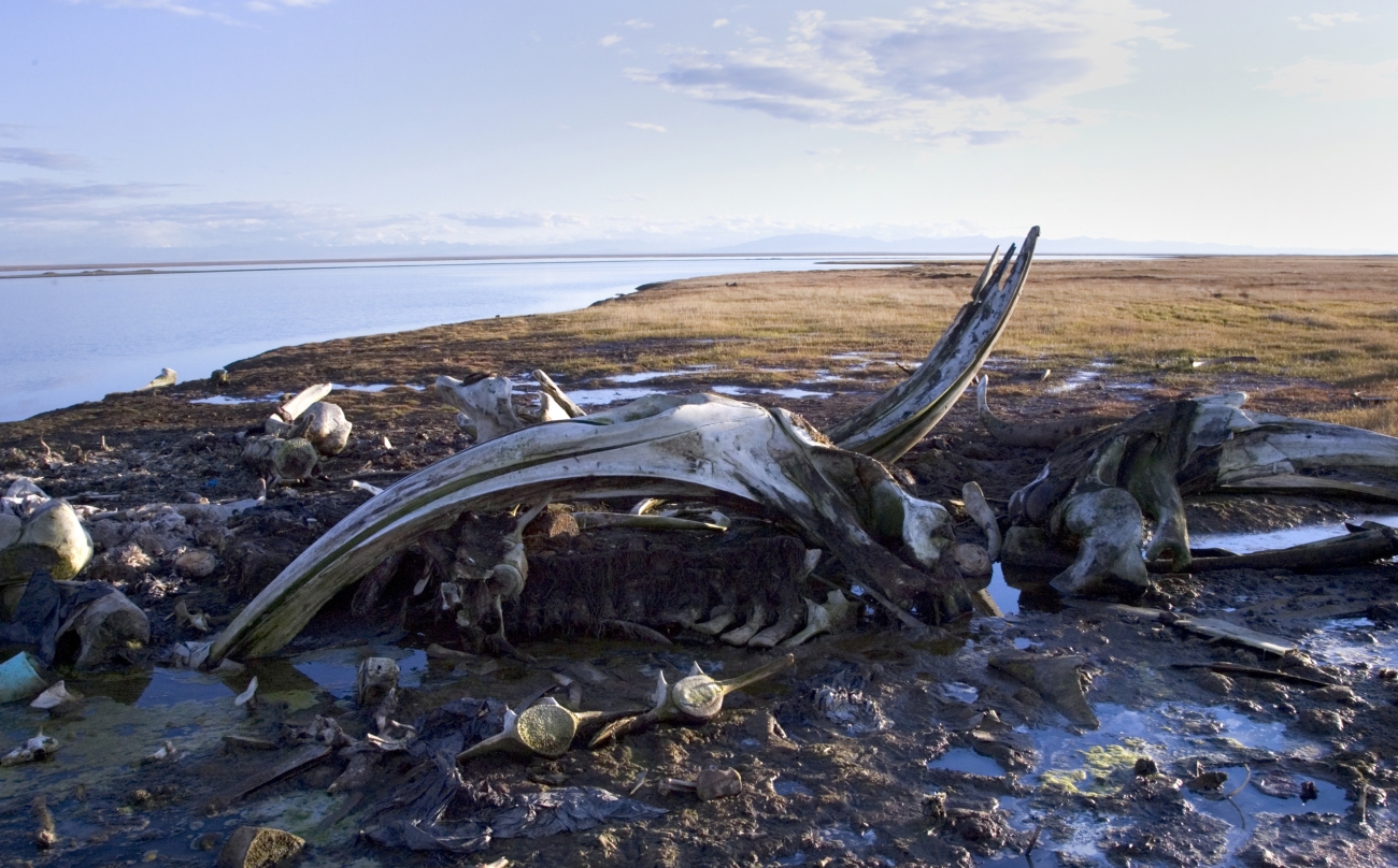 This is a picture of a whale skeleton along the shore of Arctic National Wildlife Refuge.