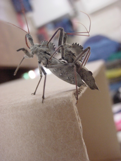 Wheel bug on cardboard