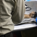 While one technician administered vaccines to this newly caught female, another technician ensures the black-footed ferret inhales a steady flow of anesthetic gas to keep her calm.