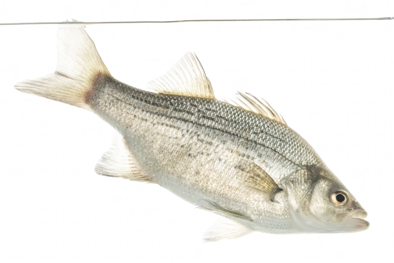 White bass are distinguishable from striped bass and hybrid striped bass by the singular tooth patch on the tongue. Both striped bass and hybrid have two tooth patches on their tongue. Found in lakes, ponds, and pools of small to large rivers.