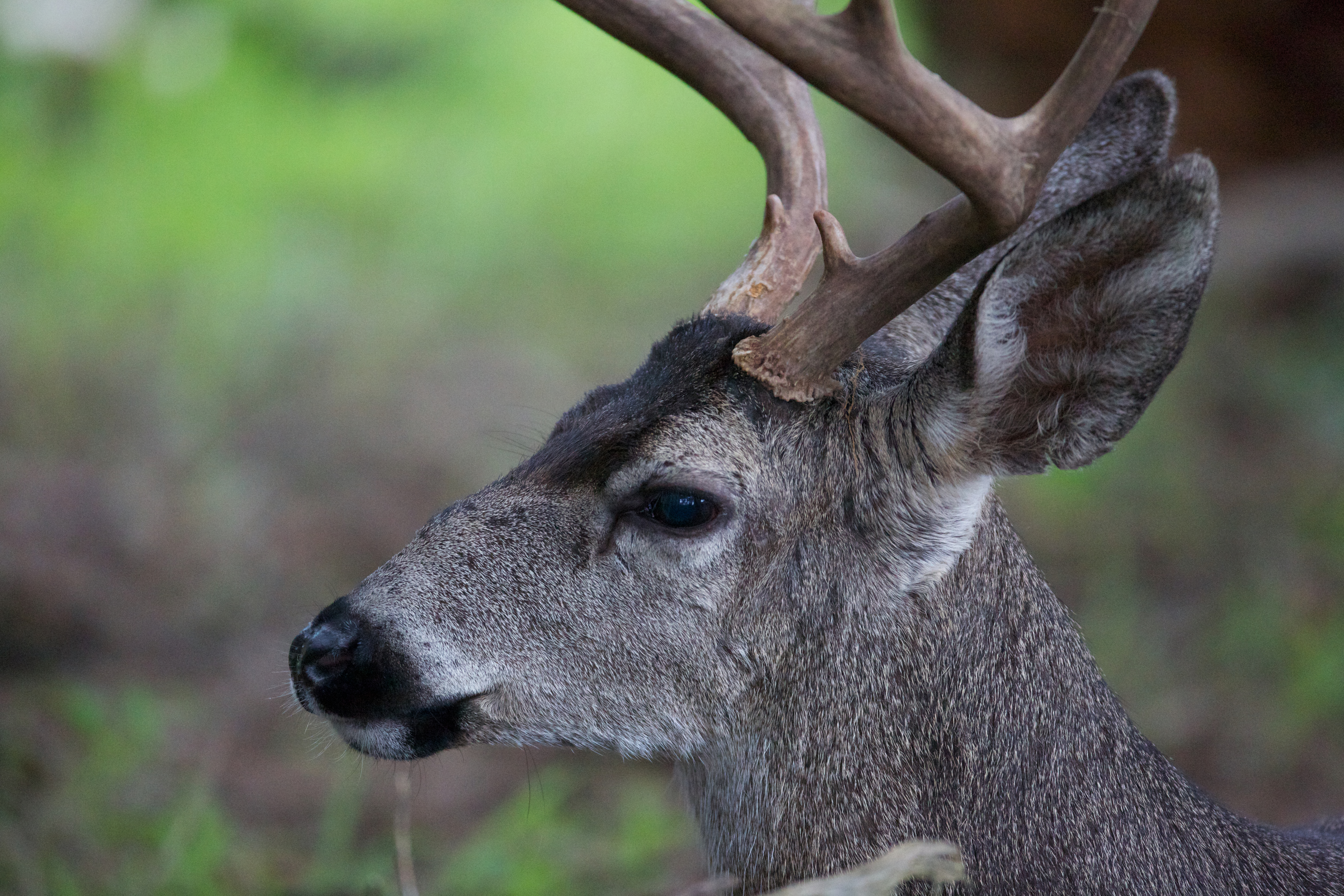 A close-up view of an adult White-tailed Deer with large antlers.