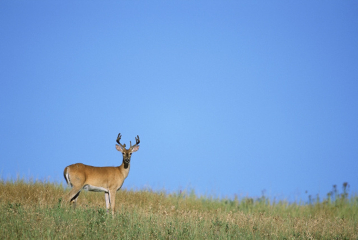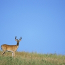 Eight-point buck standing in dry grass with big blue sky at National Bison Range. For more information about this refuge visit http://www.fws.gov/bisonrange/nbr/.