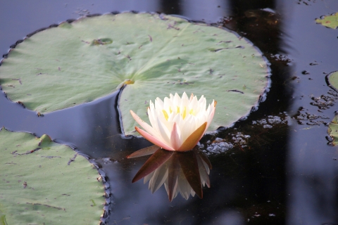 White water lily with floating leaf
