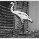 The original caption: "This whooping crane named "Ichabod" was born at Patuxent Wildlife Research Center (PWRC) and was released into the wild. Sometime later he collied with a utility pole, and was returned to PWRC where a wing was amputated as a result of the accident. He now resides at PWRC as part of the breeding colony." 1980's.