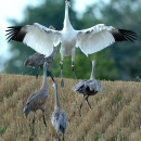 Whooping Crane with Sandhill Cranes in Michigan.