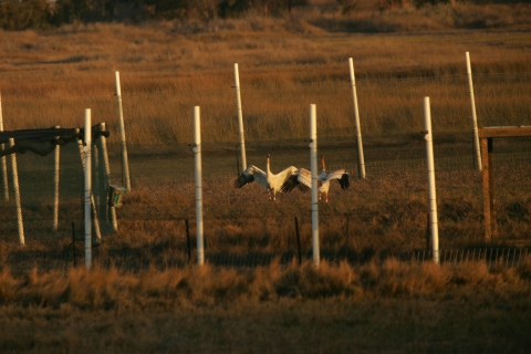Two Whooping Cranes in captive pen at St. Marks National Wildlife Refuge.