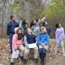 Students with the Wild Kids Club spot wildlife in the forest.