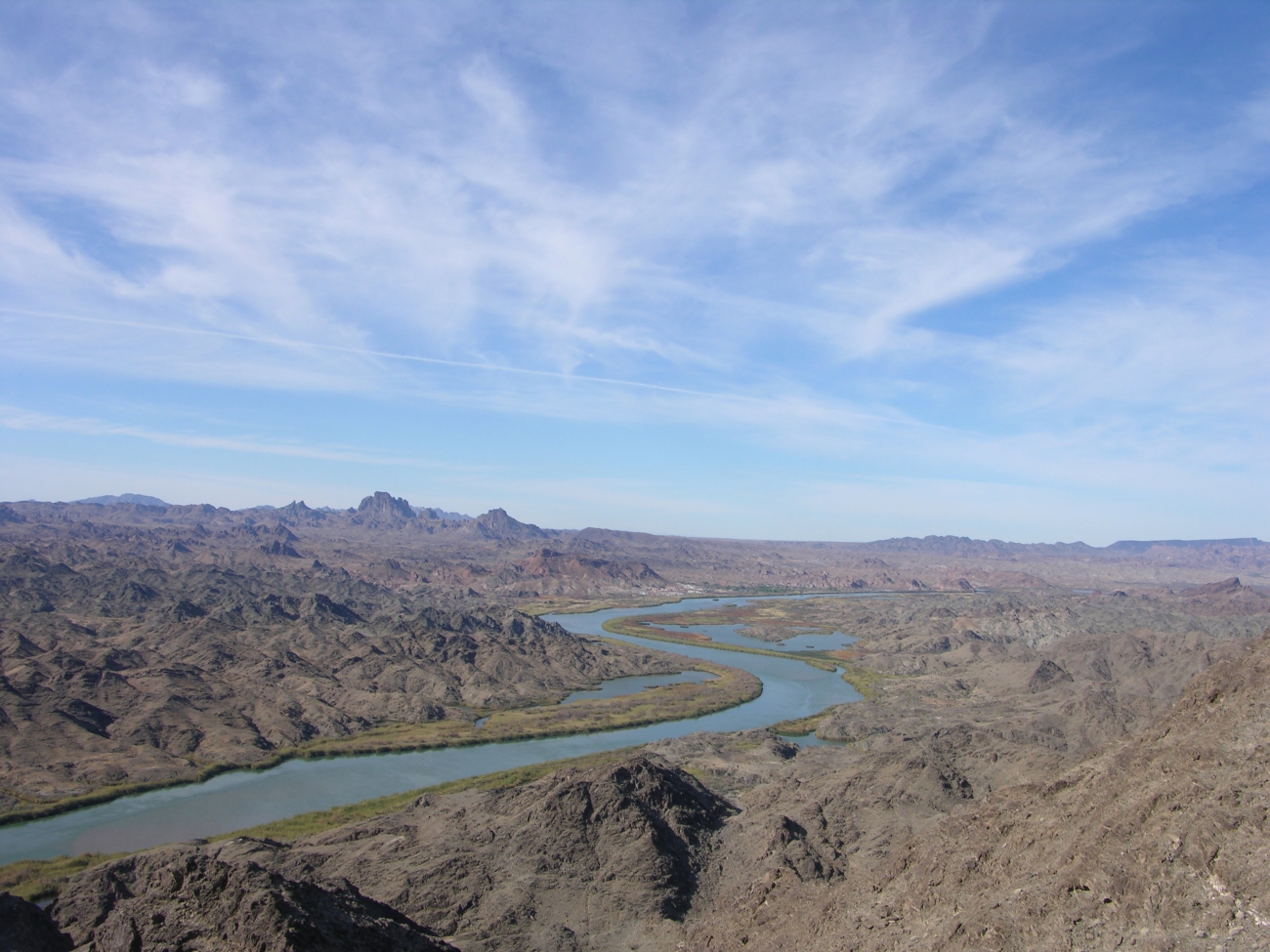 View from Watchman's Cabin looking out toward the Colorado River from the Imperial National Wildlife Refuge with some Imperial Wilderness and the Picacho State Recreation Area (CA) in the background.