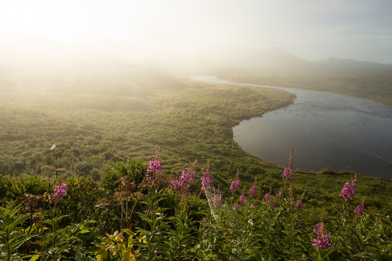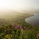 Wildflowers emerge from the fog Kodiak National Wildlife Refuge.