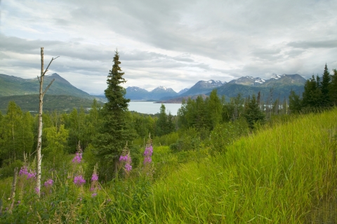 Wildflowers and landscape view near the refuge. Alaska is a land of awe-inspiring beauty and fish and wildlife spectacles, and the Kenai National Wildlife Refuge is a microcosm of all this wonderful state has to offer.