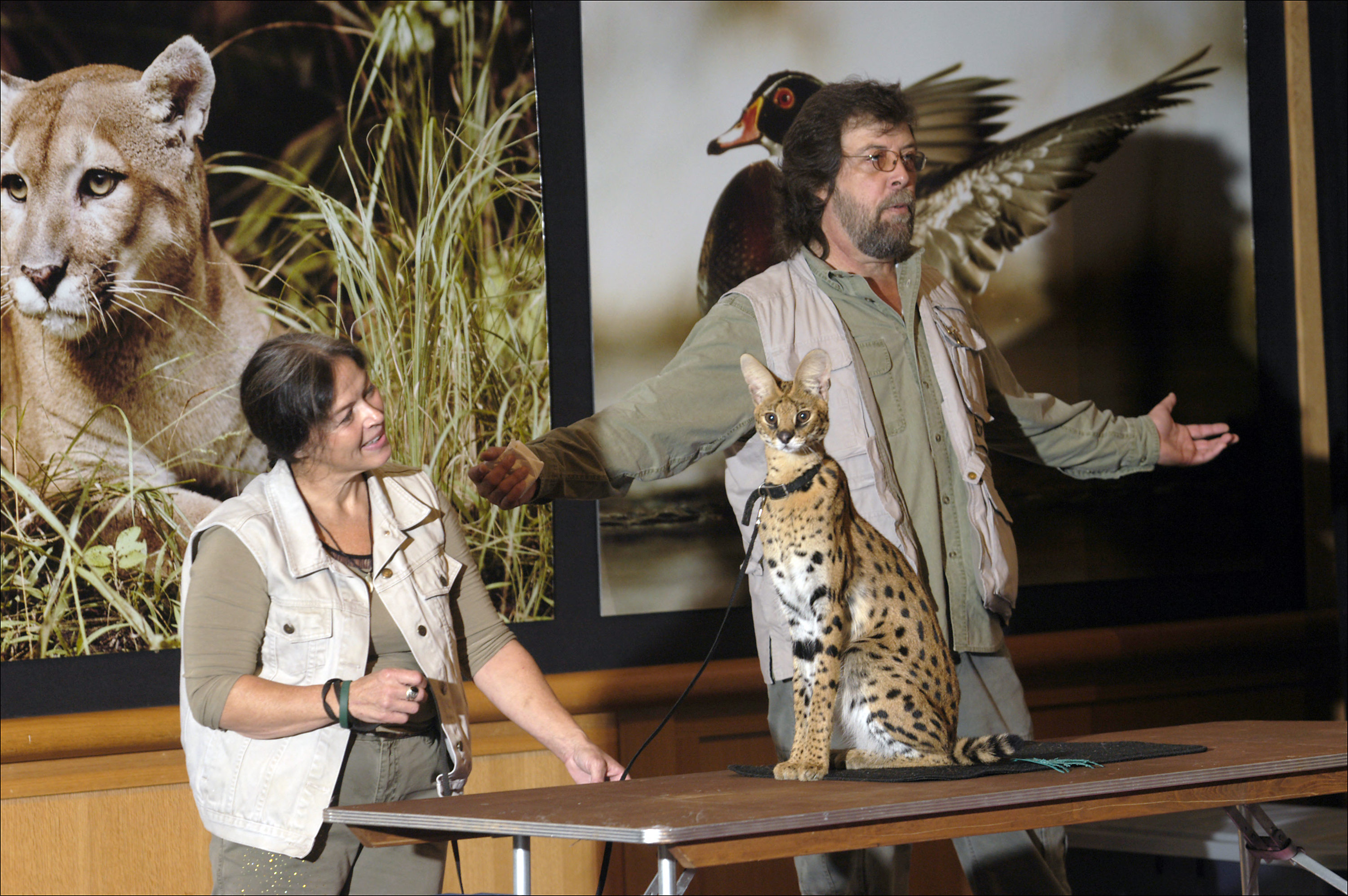 NCTC Open House including wildlife educators, Cheryl and Larry Battson, with an African Serval cat from the live critter show.