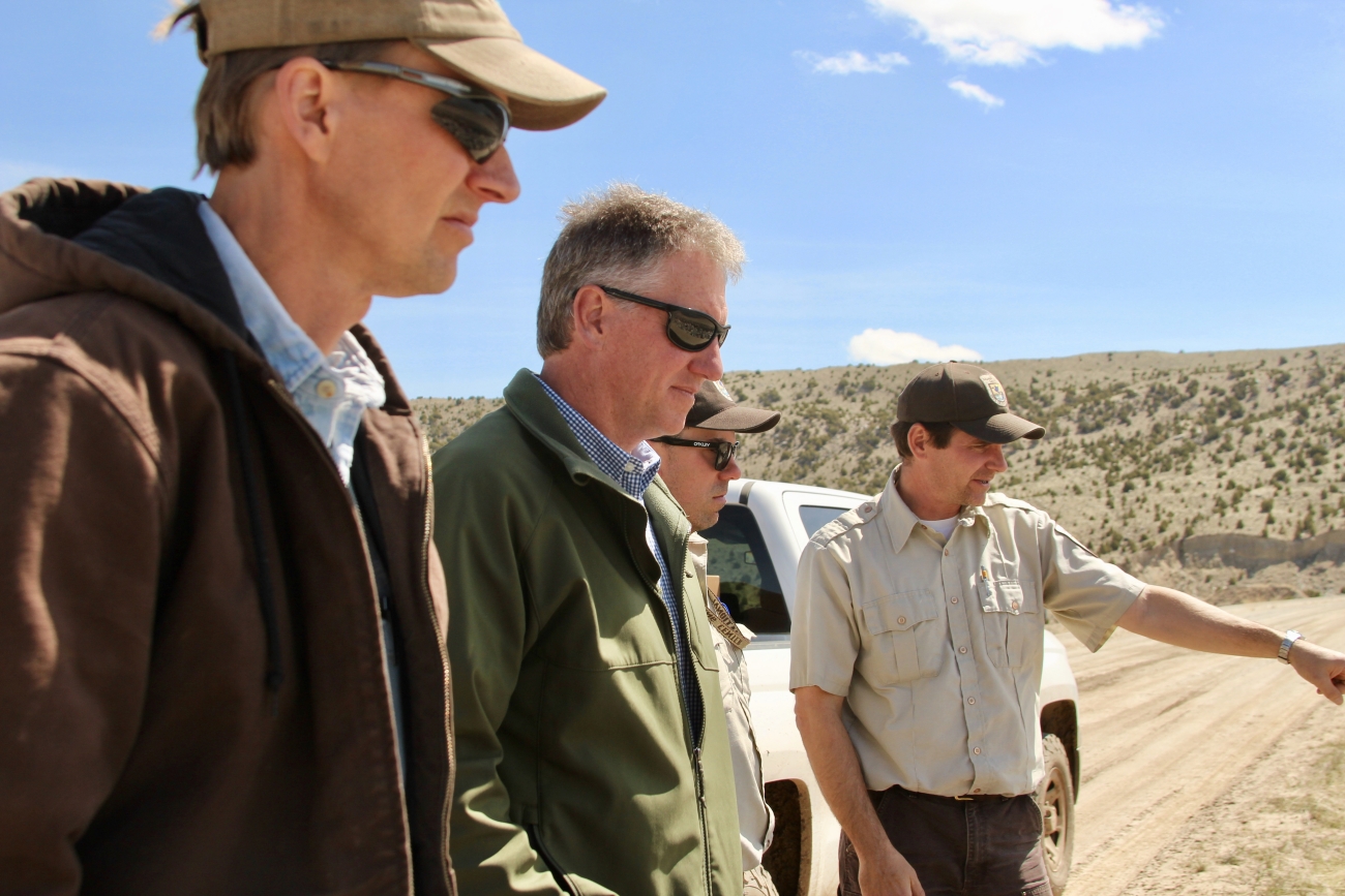 (L to R) U.S. Fish and Wildlife Service employees Pat, Mark, Craig and Mike on the Boysen Dam in Wyoming.