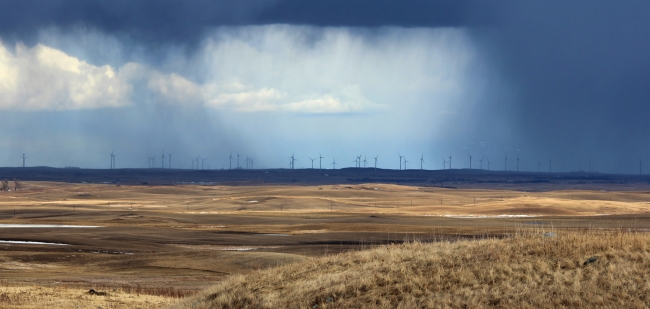 A view of the Tatanka Wind Farm in Dickey County, North Dakota during an early April shower.