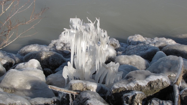 A winter ice formation at Ottawa National Wildlife Refuge.