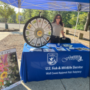USFWS employee Marsha Hart is set up to create a fun, educational tabling activity about pollinators.
