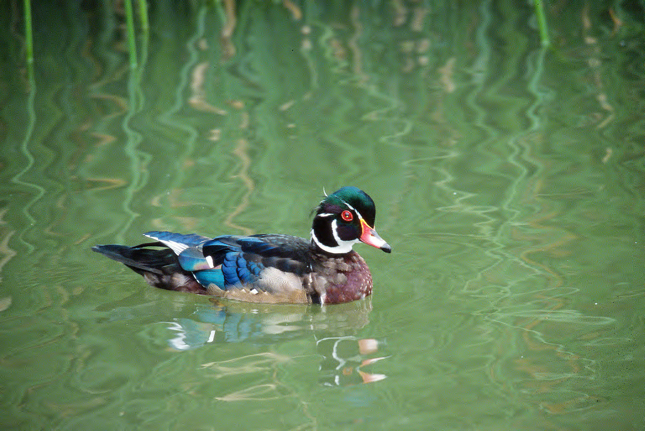The Wood Duck is a common bird of riparian habitats, wooded swamps, and freshwater marshes.