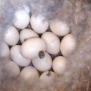Wood duck eggs generally are laid in existing tree cavities or, as in this case, human-built nest boxes.