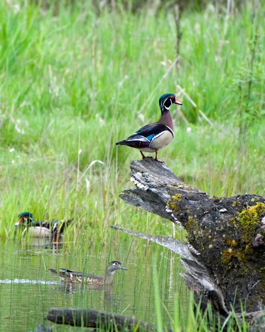 A fine example of a wood duck perched on a log at William L. Finley National Wildlife Refuge