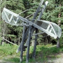 A wooden fish wheel or salmon wheel at Slana, Alaska.