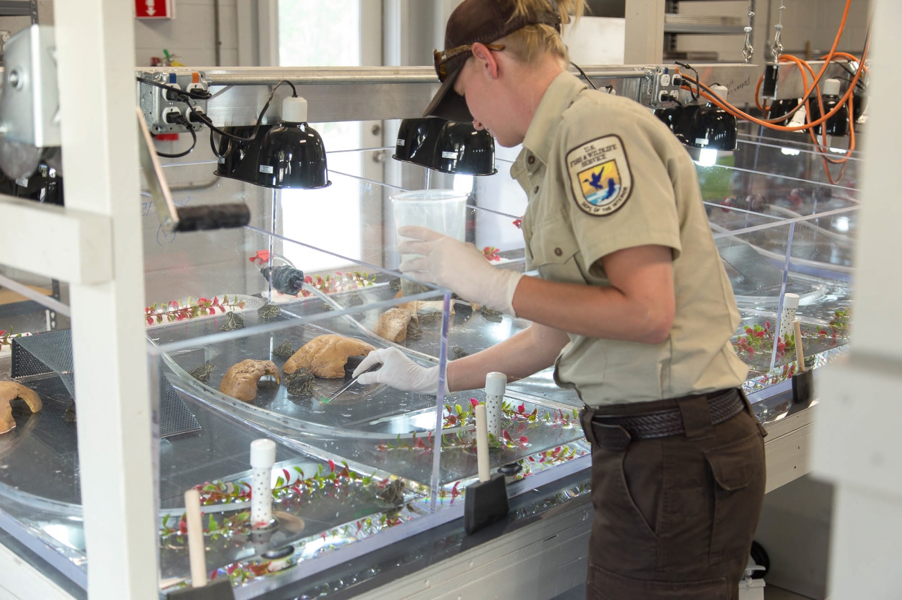 Endangered Wyoming toads were brought from Saratoga Springs National Fish Hatchery to be raised in the lab at Leadville National Fish Hatchery.