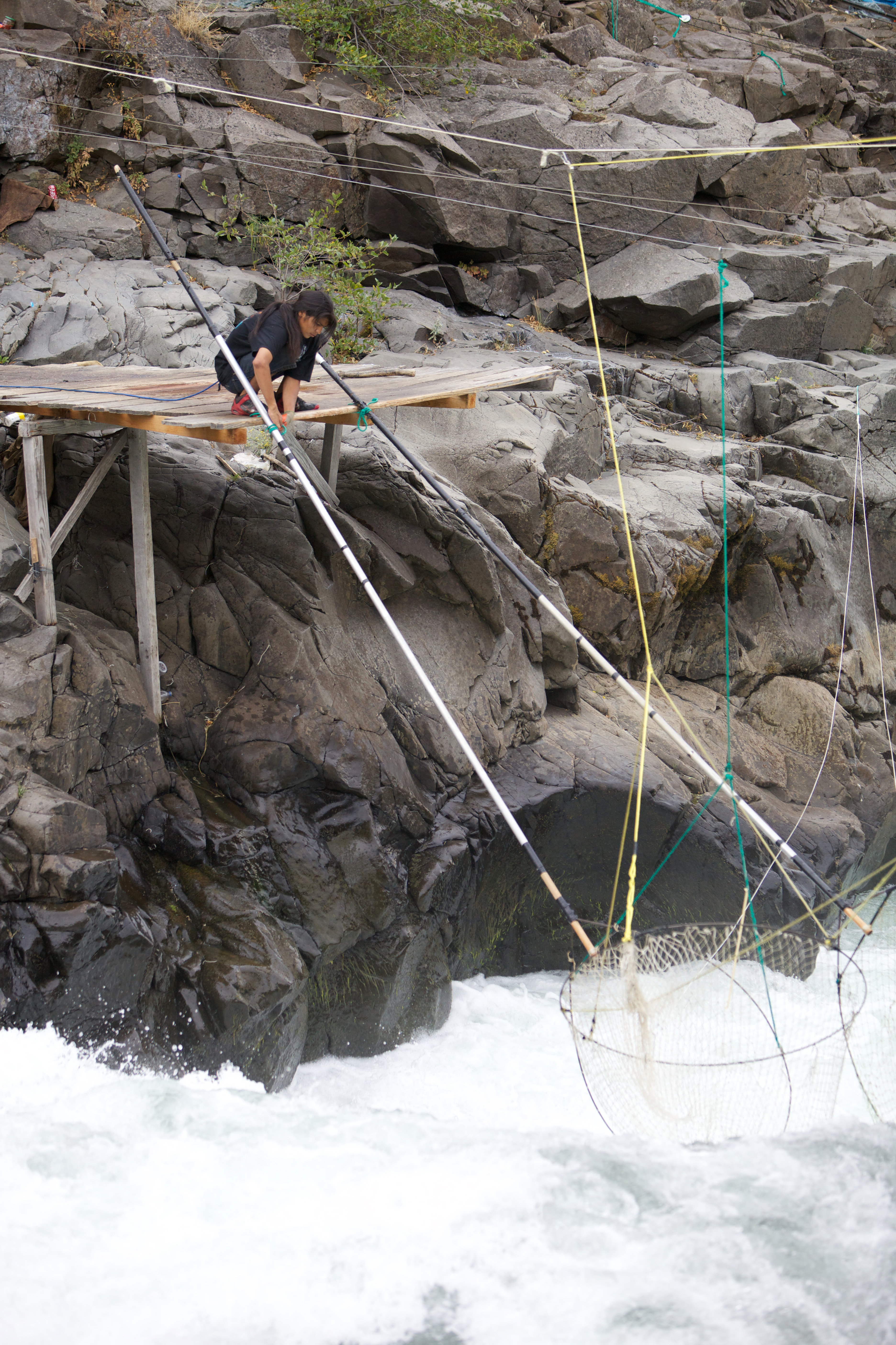 Yakama tribal members fish in the Klickitat river for Fall Chinook salmon. Dip Nets, Traditional Fishing, Columbia River Fishery, Hatchery Columbia River Inter-Tribal Fish Commission