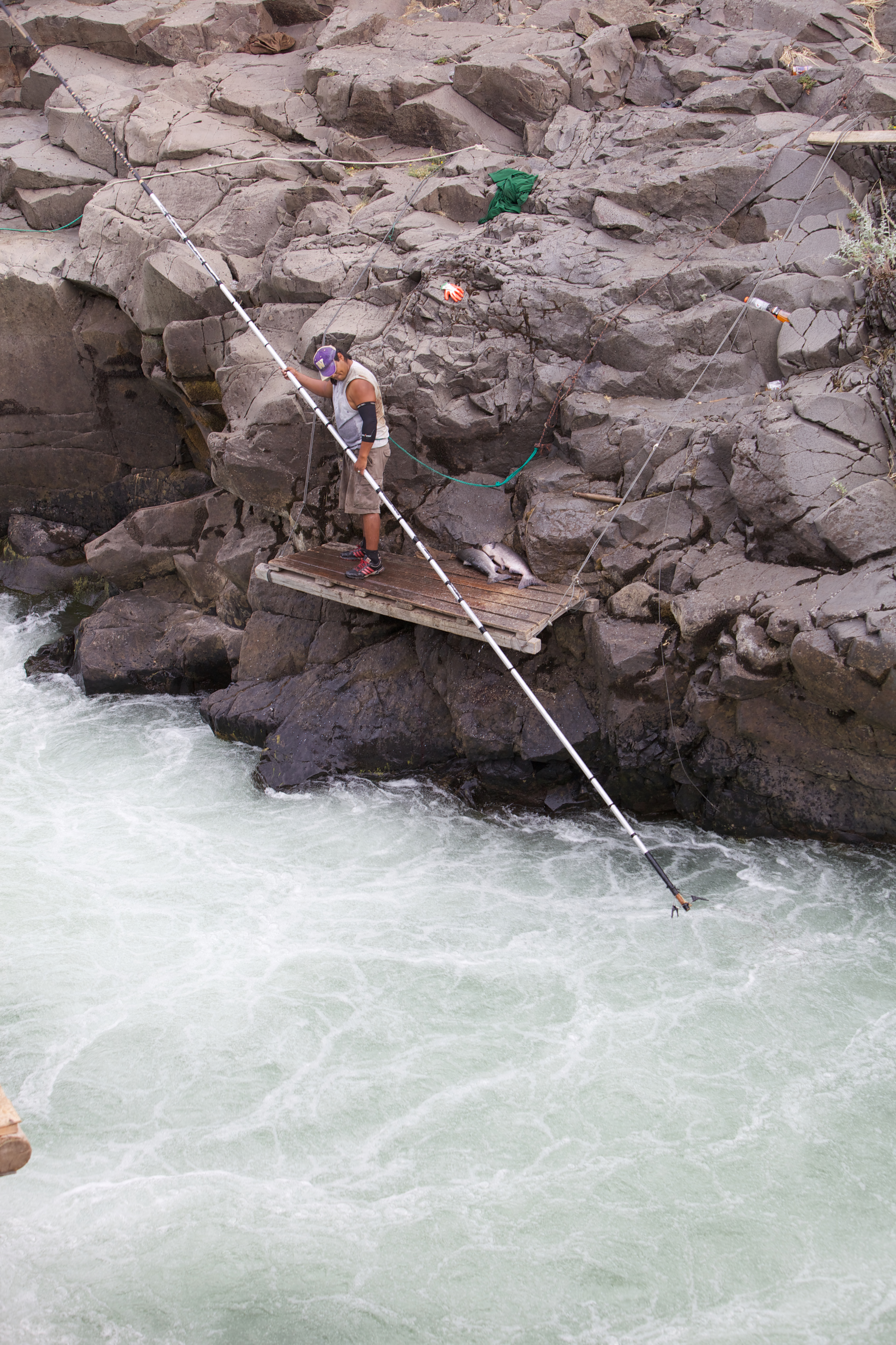 Yakama tribal members fish in the Klickitat River for Fall Chinook salmon. Dip nets, traditional fishing, Columbia River Fishery, Hatchery Columbia River Inter-Tribal Fish Commission. Pacific Northwest Fisheries.
