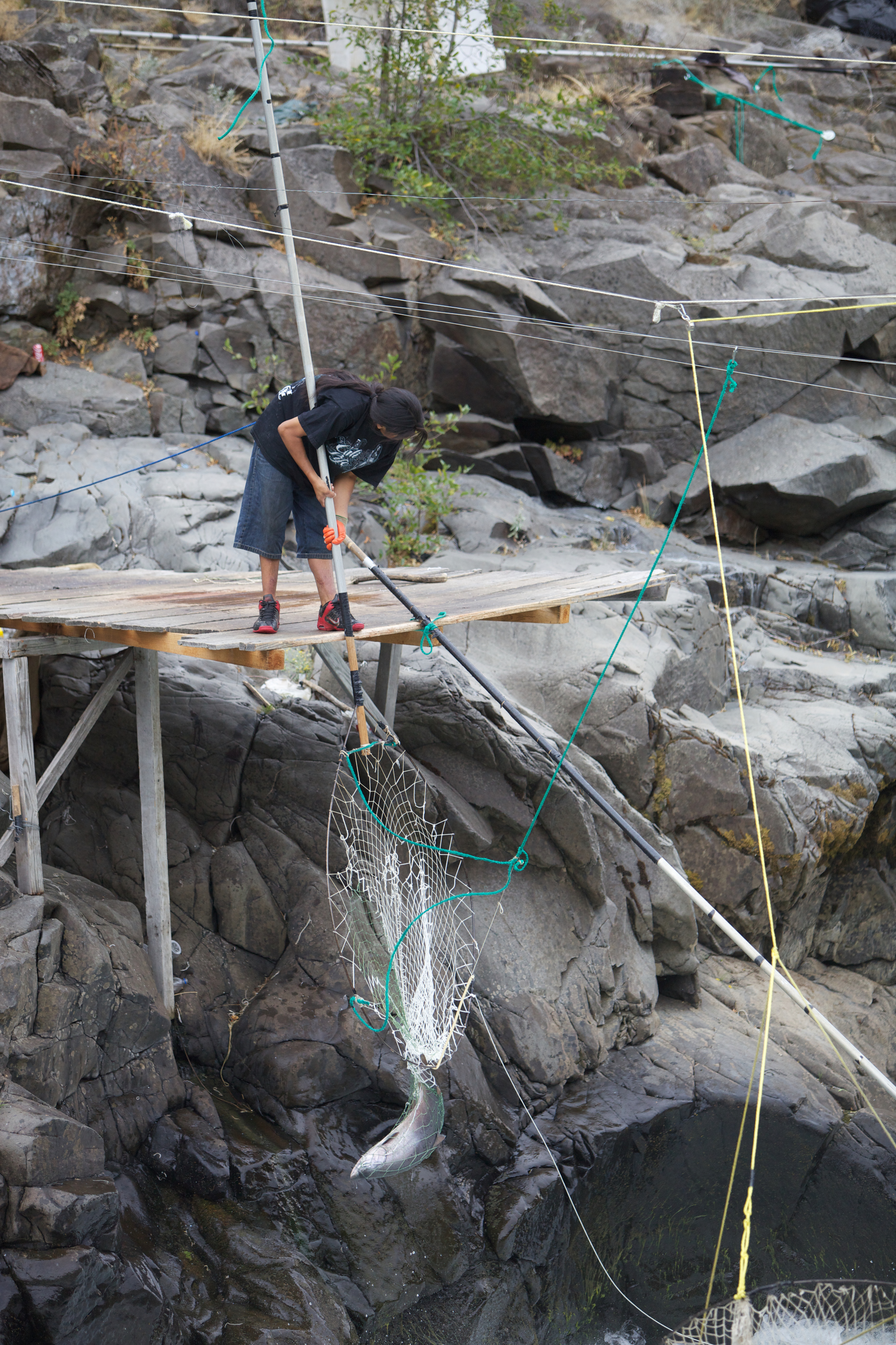 Yakama tribal members fish in the Klickitat River for Fall Chinook salmon. Dip nets, traditional fishing, Columbia River Fishery, Hatchery Columbia River Inter-Tribal Fish Commission. Pacific Northwest Fisheries.