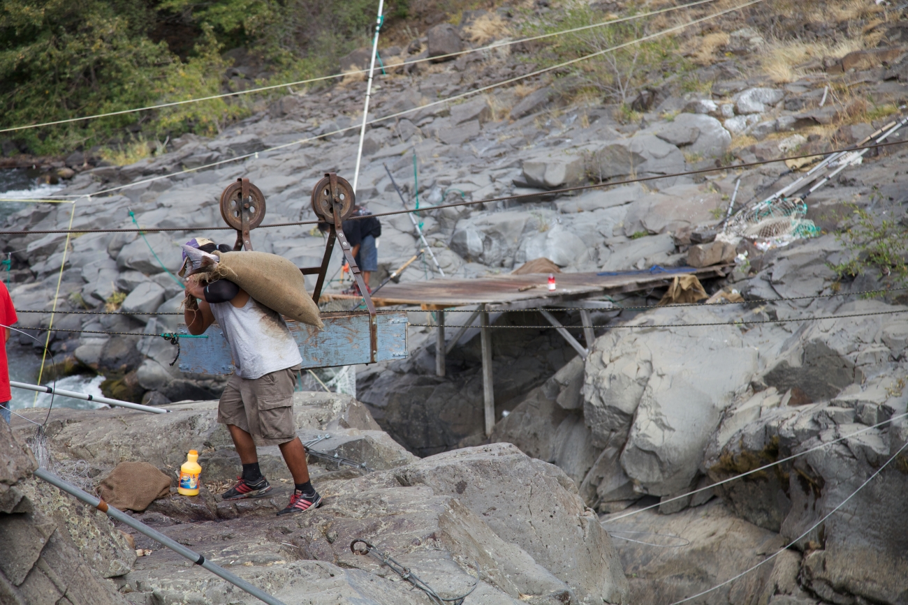 Yakama tribal members fish in the Klickitat River for Fall Chinook salmon. Dip nets, traditional fishing, Columbia River Fishery, Hatchery Columbia River Inter-Tribal Fish Commission. Pacific Northwest Fisheries.