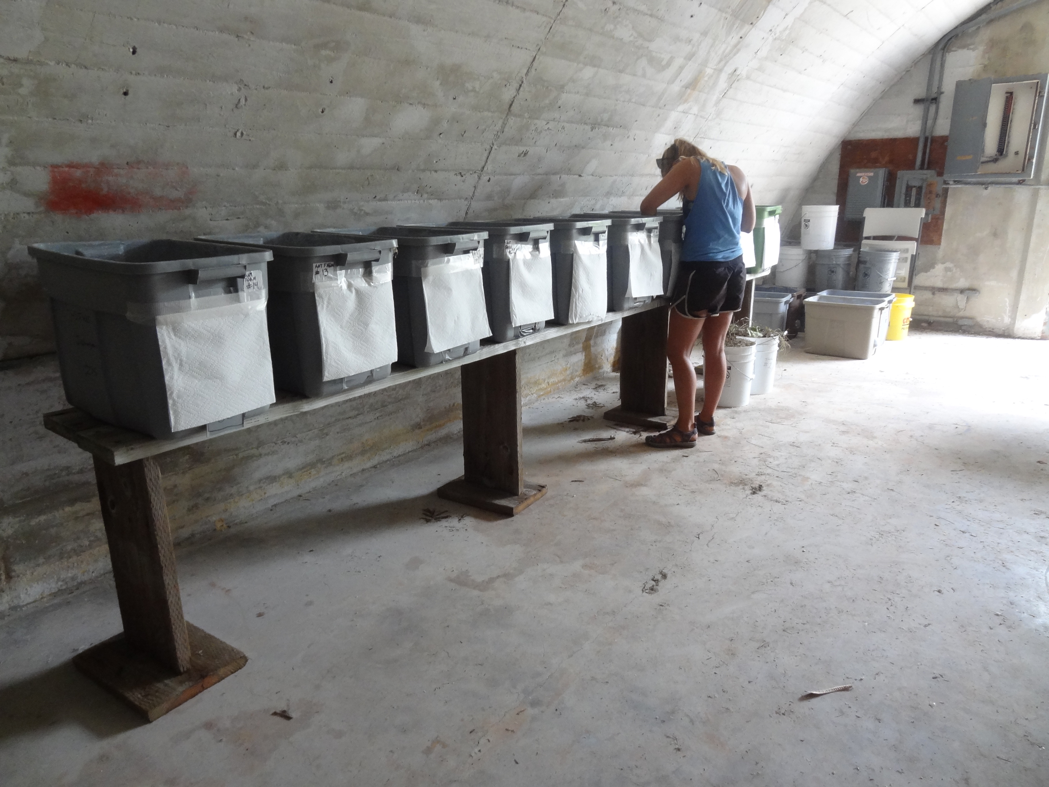To understand YCA behaviors better in order to combat the ants, CAST crews set up YCA farms where staff experimented with different baiting procedures. June 2013.