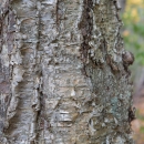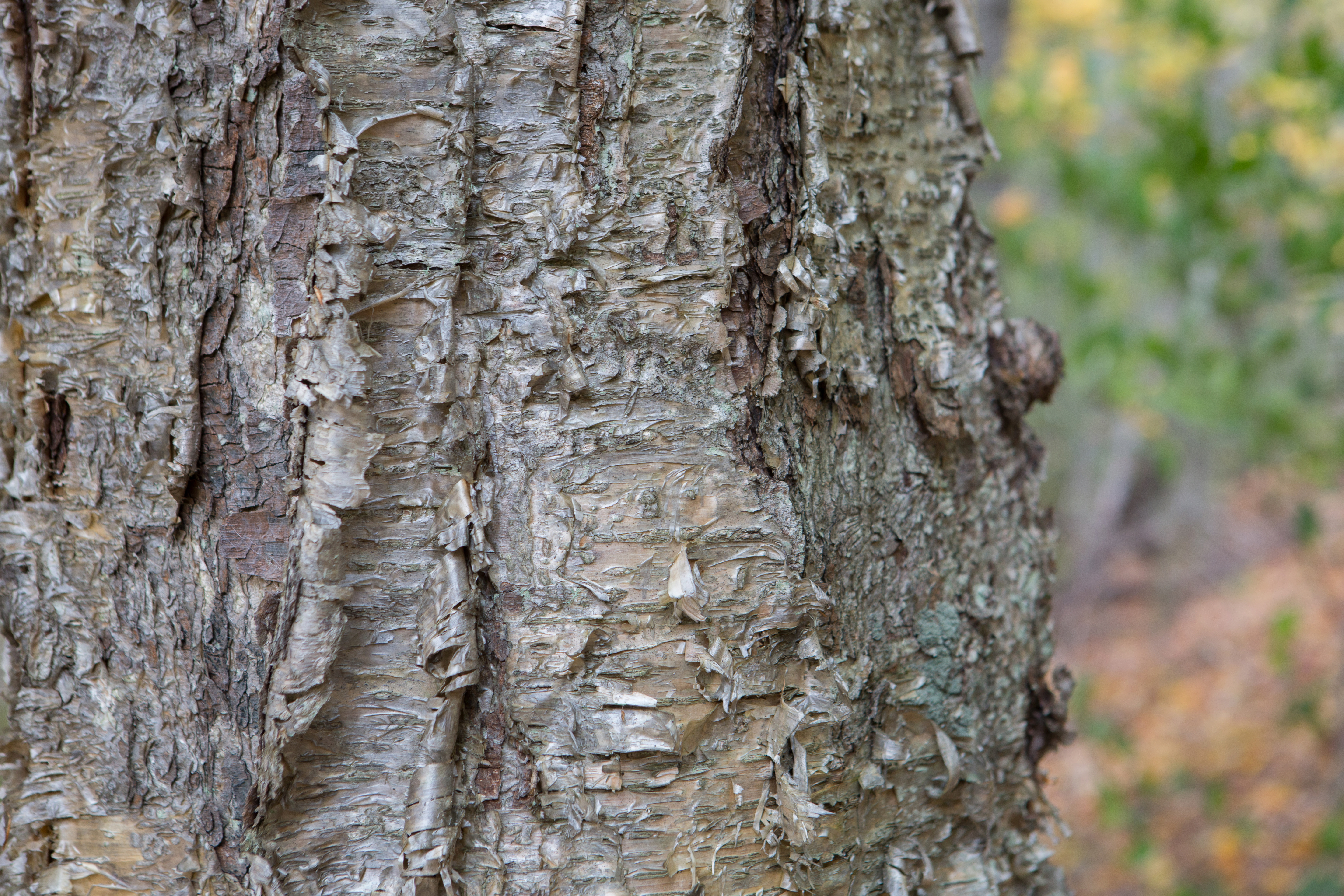 A close-up view of bark on a Yellow Birch tree.